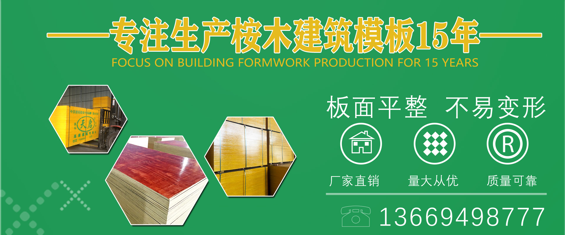 天啟木業(yè)主營(yíng):建筑木模板、膠合板、覆膜板、清水建筑模板、橋梁建筑模板、優(yōu)質(zhì)高端建筑模板。產(chǎn)品質(zhì)量倍受認(rèn)可,贏得了眾多客戶(hù)的一致好評(píng)。天啟人愿廣交天下朋友,精誠(chéng)合作,互惠互利,共創(chuàng)美好未來(lái)。咨詢(xún)電話(huà):13669498777